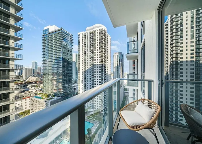 Situado no centro de Miami, o apartamento Crosby Miami Wtc 1Br 1Ba Central Stay #1405 está a 15 minutos a pé de Knight Center Complex. Neste apartamento, os hóspedes podem relaxar na piscina privada ou visitar 1 World Trade Center, que fica a 450 metros de distância.